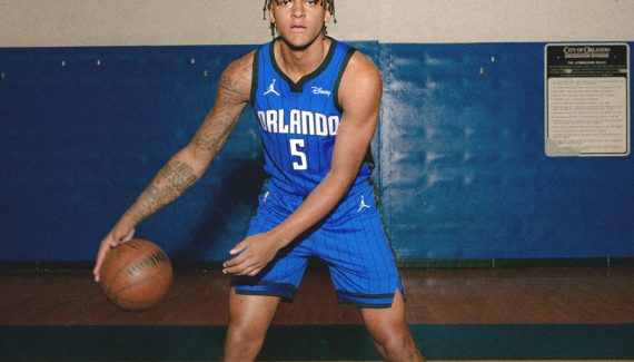 Présenté par Paolo Banchero, le premier choix de la dernière Draft et nouveau visage de la franchise d’Orlando, le nouveau maillot “Statement” du Magic fait dans la sobriété : du bleu, la couleur primaire du club, et les habituelles “pinstripes”, ces rayures verticales noires.
