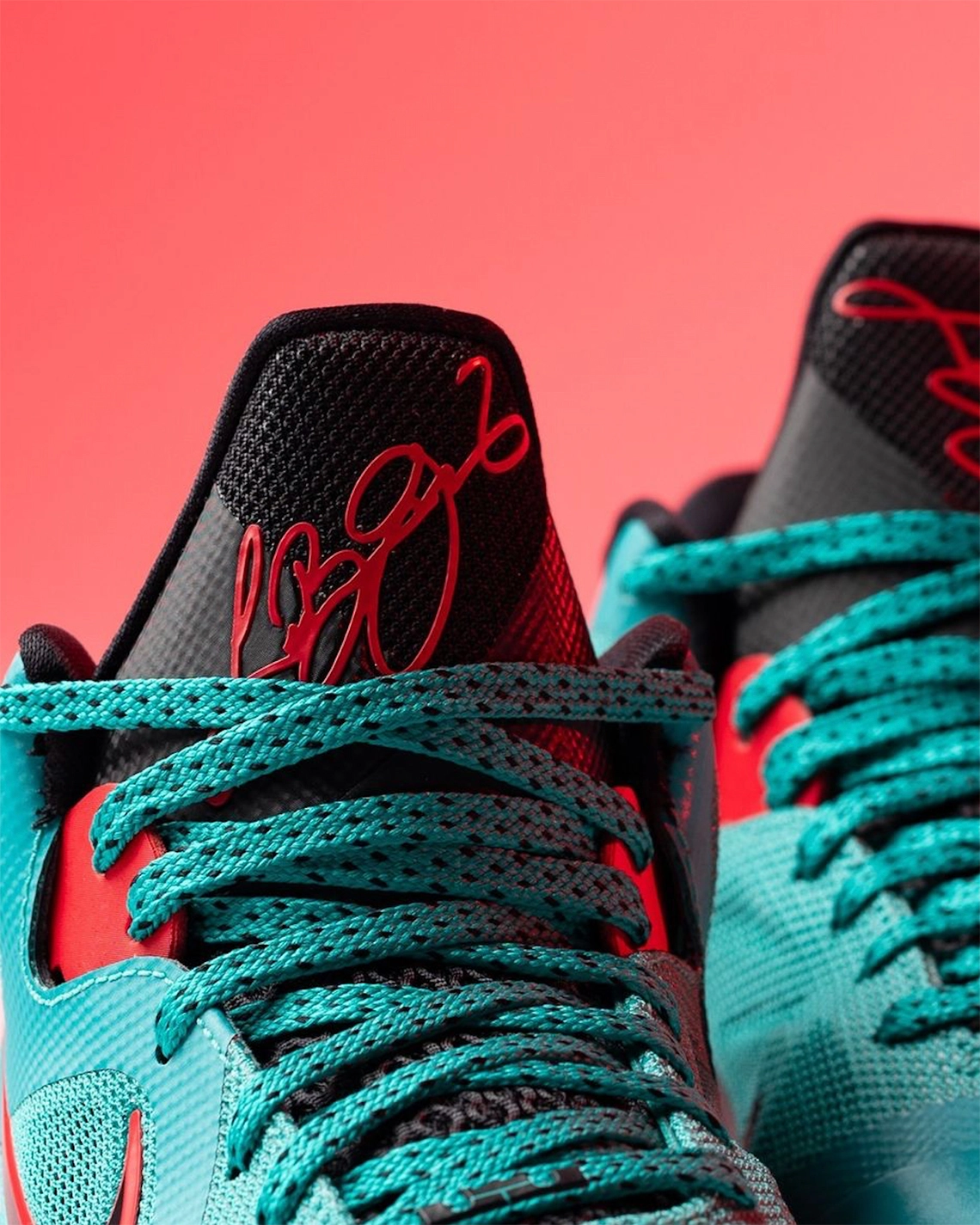 Avec une petite spécificité pour ce modèle « reverse » puisque le rouge n’est présent que sur les finitions (contour du « Swoosh » noir, au niveau de la languette et de la semelle extérieure) tandis que le turquoise (l’autre couleur emblématique du club) recouvre toute la tige.