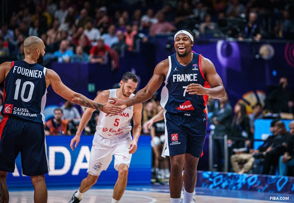 Par la suite, après un (très) bref sursaut d'orgueil de la Pologne initié par AJ Slaughter au début du deuxième acte, la sélection tricolore maintient ses efforts, sans fioriture mais avec grand sérieux. Les joueurs polonais demeurent impuissants offensivement face à la muraille bleue, incarnée notamment par Rudy Gobert qui s'offre deux énormes contres type “smash” de volley.