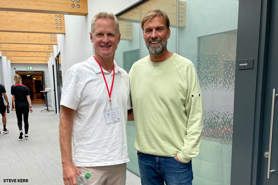 Cet été, Steve Kerr a visité en famille le sud de la France, Londres, mais aussi l’Egypte où il n’avait plus mis les pieds depuis 1985 ! L’occasion de s’entretenir avec son joueur préféré, la superstar locale Mohamed Salah, mais aussi d’échanger avec Jurgen Klopp, l’entraîneur de son équipe préférée, Liverpool.