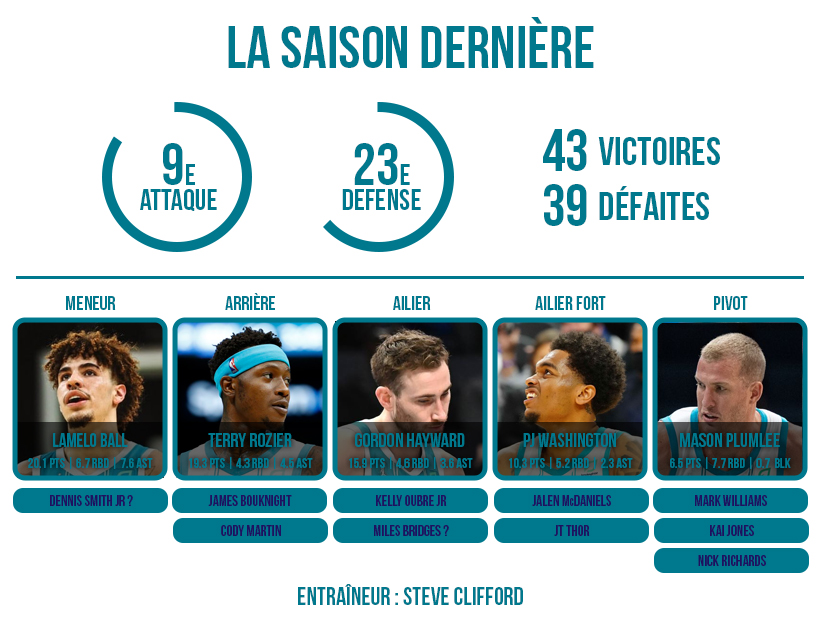 Excitants et redoutables en attaque, avec un cinq de départ productif et des remplaçants intéressants par séquences (Kelly Oubre Jr, Cody Martin, Jalen McDaniels, James Bouknight…), les hommes de Steve Clifford trouvent également un certain équilibre en défense. Par le passé, cet aspect leur a trop souvent causé du tort mais, avec le retour de leur ancien coach, ils progressent de ce côté du parquet et cela change pas mal de choses.
