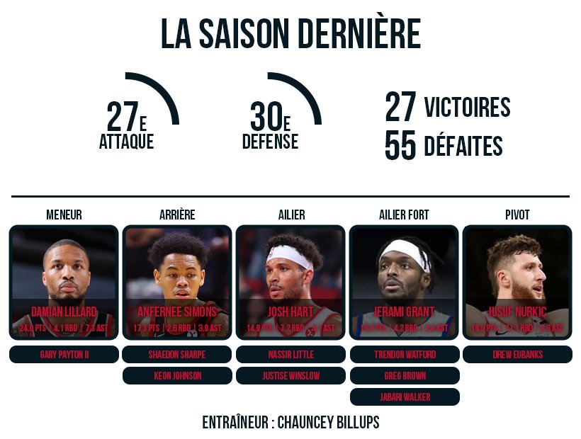 — Arrivées : Jerami Grant (Pistons), Gary Payton II (Warriors), Shaedon Sharpe, Drew Eubanks