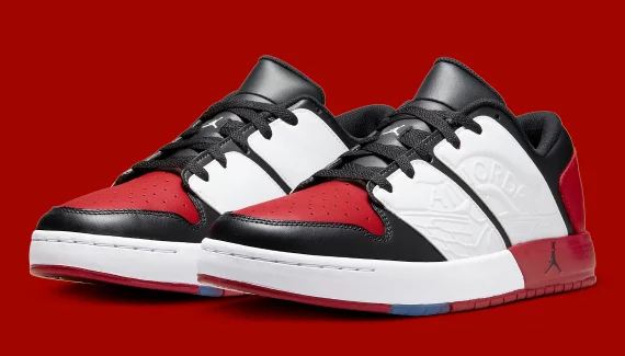 Pour son retour en 2022, on retrouvera la Jordan Nu Retro 1 sous l’emblématique coloris « Chicago », avec sa tige en cuir lisse parée de blanc, noir et rouge, combinaison que l’on retrouve au niveau de la semelle, à l’exception d’une bande en bleu translucide.