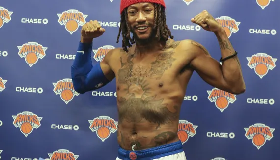 C'est torse nu mais avec un bonnet que Derrick Rose s'est présenté devant la presse new-yorkaise. Un look improbable pour montrer qu'il n'a jamais été aussi affûté. Parce qu'il sort d'une saison à 26 matches avec des stats en baisse et des blessures, l'ancien MVP veut se donner les moyens de rebondir, et il a annoncé qu'il avait perdu 10 kilos ! Tout est parti d'un email de Tom Thibodeau qui lui parlait de son poids.