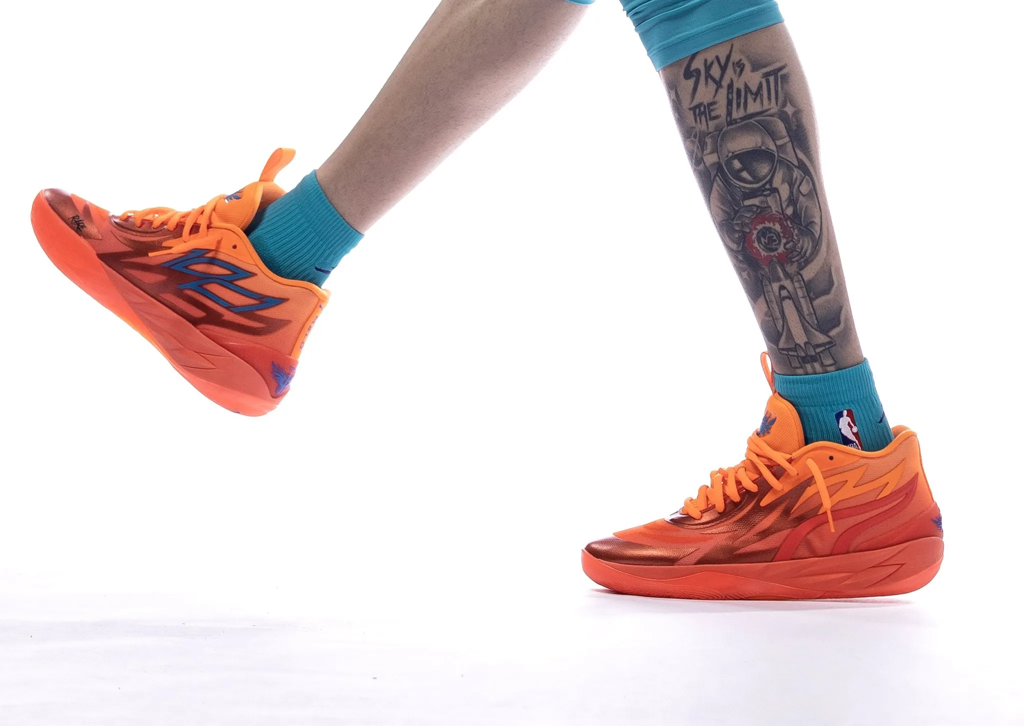 LaMelo Ball a ainsi créé l'événement lors du Media Day en se présentant avec son prochain modèle signature, dont ni la sortie ni le prix ne sont encore connus. Contrairement à ce qu'a pu faire Jordan Brand entre la Zion 1 et la Zion 2 en changeant complètement d'orientation, ce deuxième modèle de la série « MB » garde les mêmes spécificités, avec notamment une grosse semelle, une languette plutôt large, et un motif de flammes, cette fois horizontales.