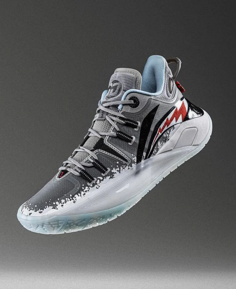 Sur les premières images diffusées par Nick DePaula, d'ESPN, on peut apercevoir une mousse généreuse pour composer la semelle intermédiaire, une tige principalement en mesh avec des motifs d'éclaboussure à sa base au niveau du coloris, en gris et blanc sur le modèle ci-dessous. On note aussi la présence des renforts sur les oeillets pour assurer davantage de maintien, et d'une tirette originale.