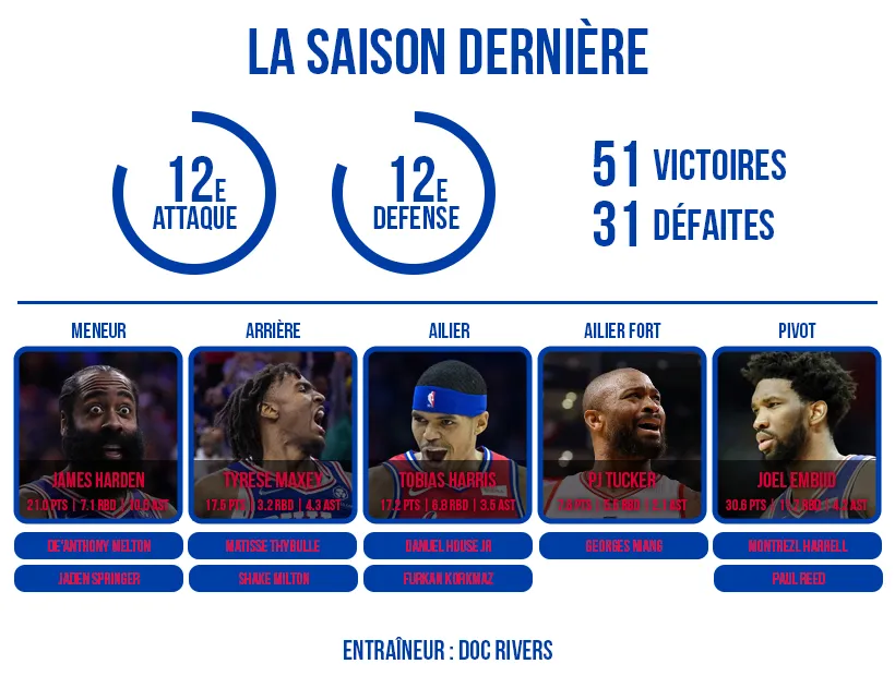 Joel Embiid ayant terminé à la deuxième place du vote du MVP et Tyrese Maxey ayant affiché une des progressions les satisfaisantes de toute la ligue l'an passé, il est de facto assez logique que les attentes à Philadelphie cette saison soient tournées vers James Harden.