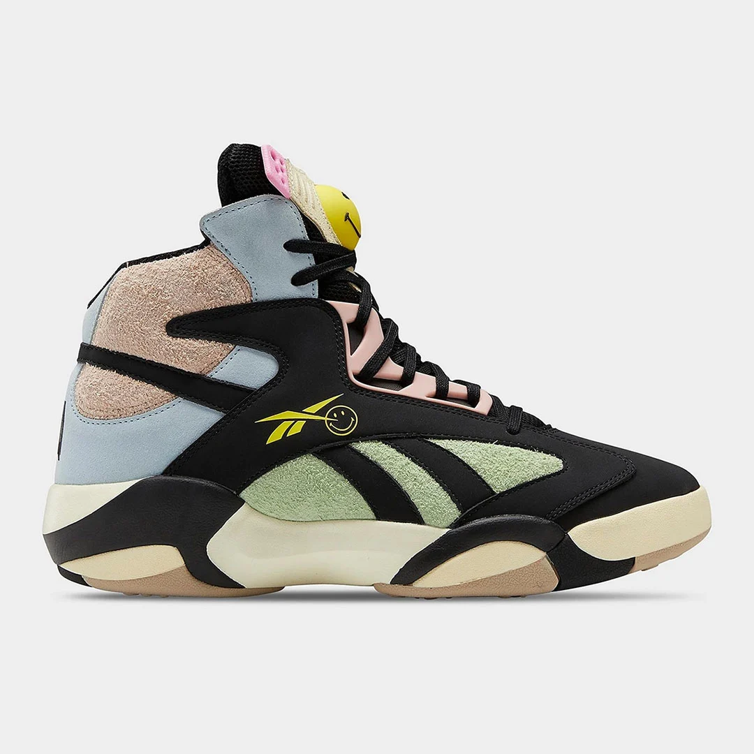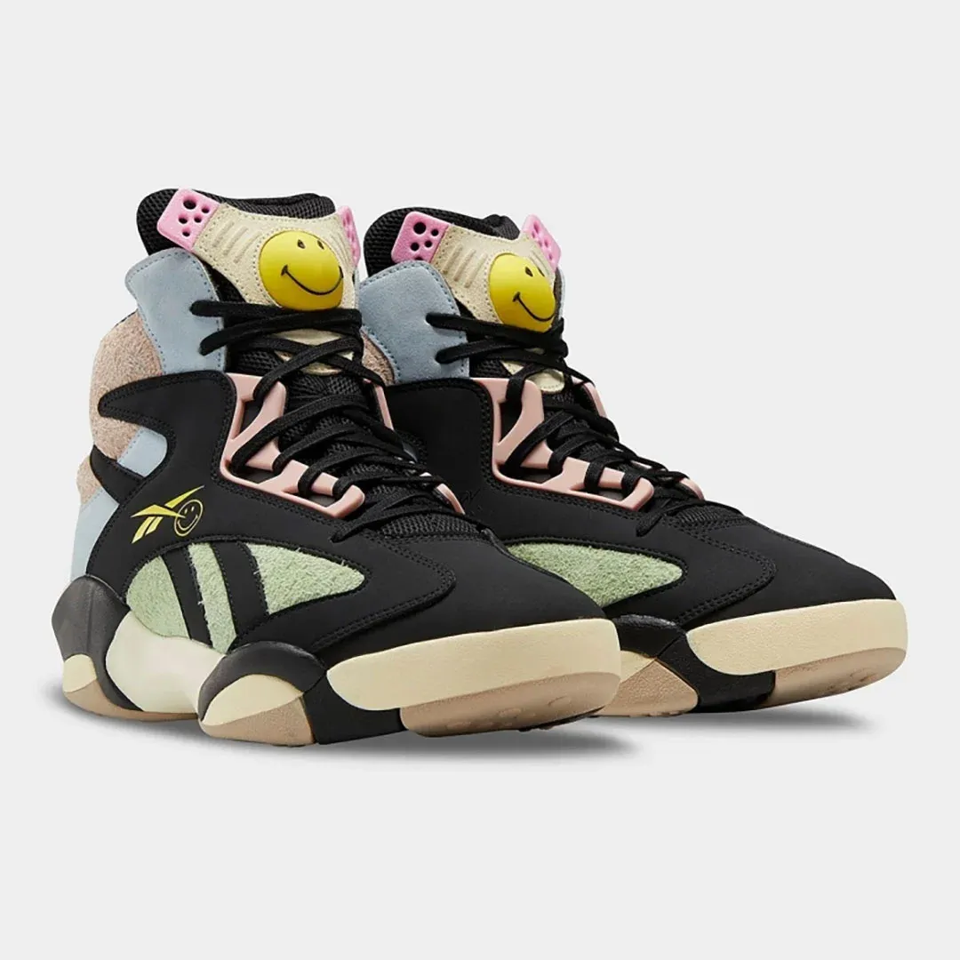 Reebok met le paquet pour les 30 ans de la Shaq Attaq avec cette fois un clin d’œil aux mythiques « smileys », apparus sous leur forme « colorée » pour la première fois en 1972.