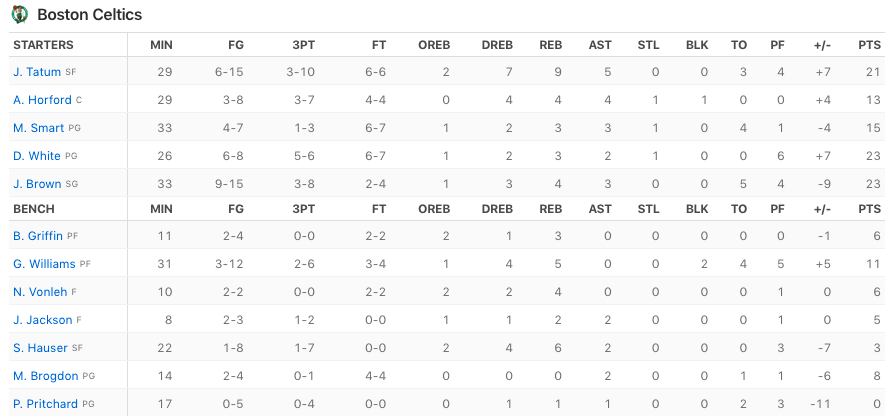 En face, les Celtics ont eux surtout cherché les décalages pour les shooteurs libres de loin. Cela donne 19/54 à 3-points pour Boston, contre 7/29 pour Toronto, avec notamment un 0/7 dans l’exercice pour Precious Achiuwa.
