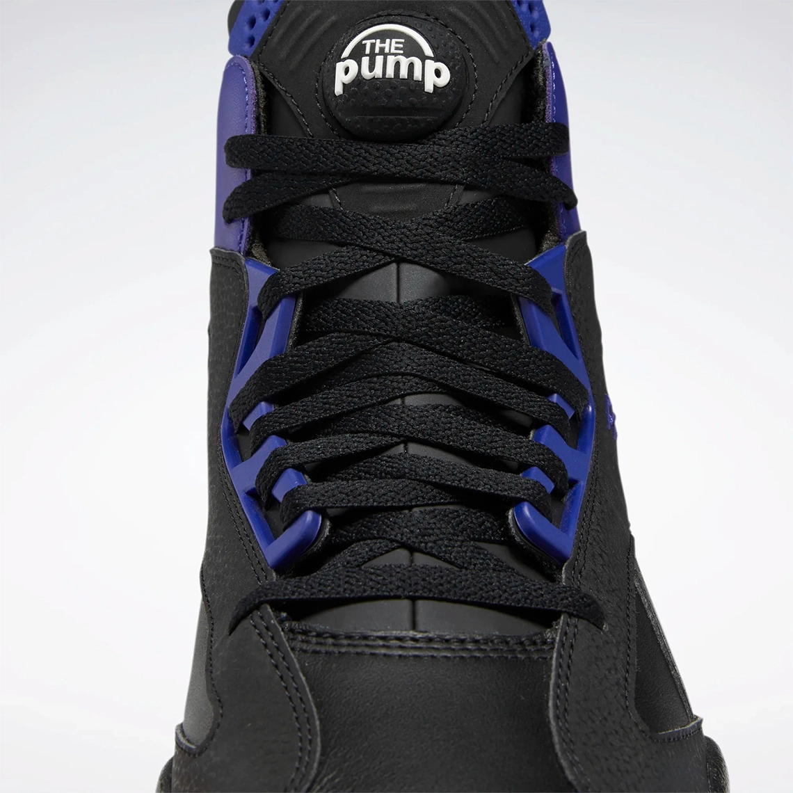 On retrouve ainsi une tige noire complétée de violet et or, principalement au niveau du talon. L’inscription Reebok sur l’empeigne ressort également en violet tandis que le « Pump » sur la languette apparaît en blanc. L’ensemble repose sur une semelle entièrement noire.