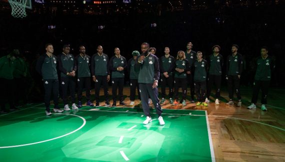 C’est d’abord Jaylen Brown qui a prononcé un discours en hommage à l’ancien pivot de la franchise.