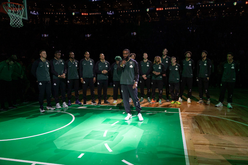 Pour honorer Bill Russell, les Celtics ont peint des “6” dans chaque raquette du TD Center. Et comme toutes les équipes de la ligue, ils vont également porter le numéro de l’ancien pivot sur leur maillot, toute la saison. De plus, ils ont porté cette nuit leur maillot “City Edition”, qui multiplie les références à Bill Russell.