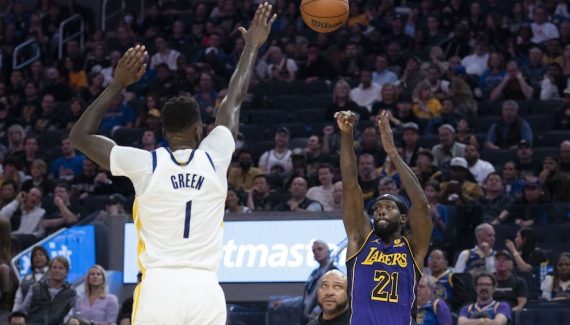 Alors qu’ils étaient la 22e équipe NBA l’an passé au niveau de l’adresse de loin (34.7% de réussite), les Lakers sont repartis sur de mauvaises bases cette nuit face aux Warriors. Si les visiteurs ont largement dominé les champions en titre dans la raquette (60 points inscrits contre 38), ils ont eu beaucoup plus de mal à étirer le jeu : seulement 10/40 derrière la ligne à 3-points, soit un faiblard 25% de réussite.