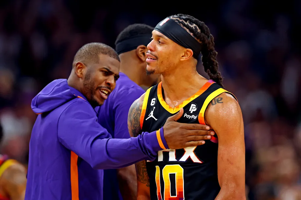 ⛔ Chris Paul. Transparent du début à la fin, sauf pour porter la balle et faire tourner le jeu (9 passes), “CP3” s'est troué et a abandonné ses coéquipiers cette nuit : 6 points, à 1/6 aux tirs. Simple passage à vide ou faut-il réellement s'en inquiéter ? Car c'est plutôt inhabituel de voir les Suns mieux jouer quand leur meneur est sur le banc que lorsqu'il se trouve sur le parquet. À tel point que Monty Williams a décidé de se passer purement et simplement de son All-Star pour les sept dernières minutes du match !