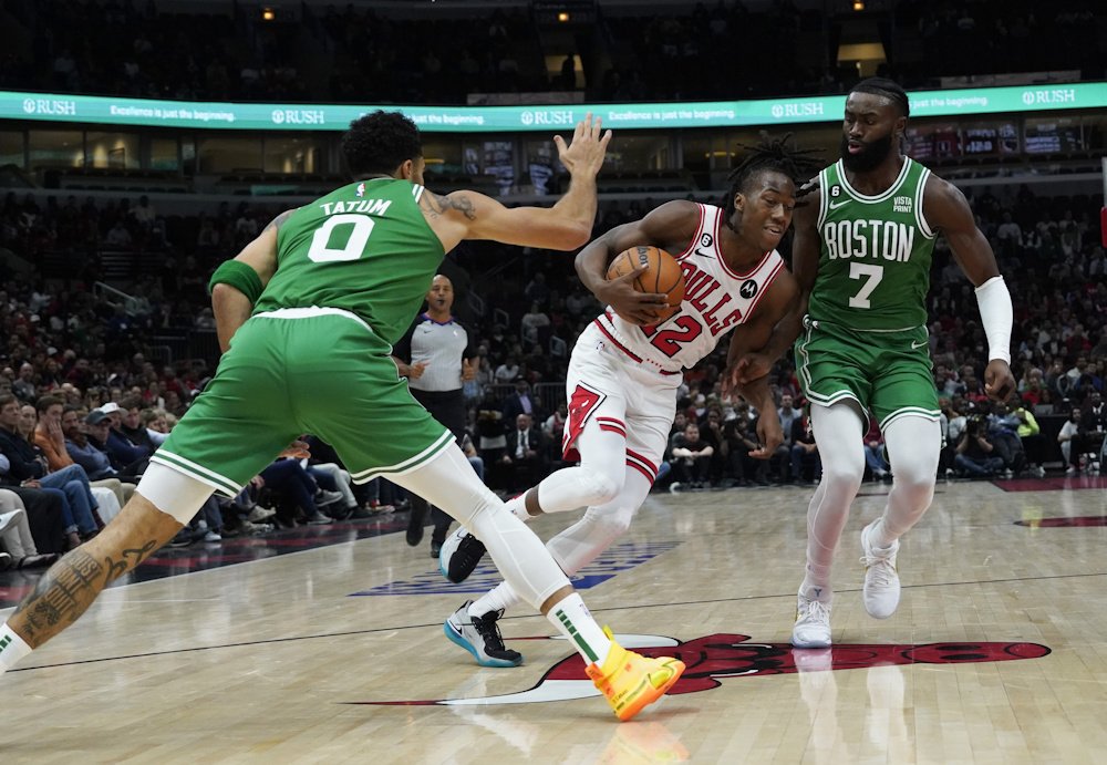 – Ayo Dosunmu marque son territoire. Lonzo Ball sur le flanc, les Bulls ont donné le poste de meneur de jeu à Ayo Dosunmu, un pari risqué qui a fonctionné à merveille cette nuit. Dosunmu semble de plus en plus à l’aise. Cette nuit, il a été décisif des deux côtés du terrain face à la meilleure équipe de la conférence Est et au meilleur défenseur de la saison dernière, Marcus Smart.