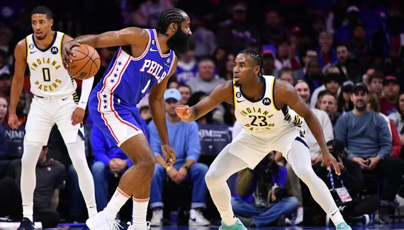 La deuxième mi-temps est plus équilibrée avec des Pacers qui défendent beaucoup plus haut. Cette pression permet de voler des ballons, mais… elle laisse aussi des brèches dans le dos. C'est Embiid qui s'occupe encore de tout pour éviter toute tentative de comeback. Mais prudence car Tyrese Haliburton et Bennedict Mathurin ont beaucoup de talent et de culot. Ils perturbent la défense de Philly, et Indiana revient à -8 grâce à son rookie. Sauf que Harden reprend les choses en main, avec un panier symbole : ce step-back où il envoie Mathurin sur les fesses. Le 3-points est propre, et la main levée, Harden célèbre la première victoire de la saison des Sixers.