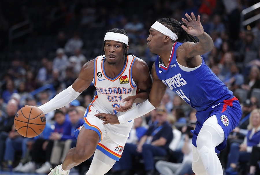 Compteur de victoires débloqué pour le Thunder. Après trois défaites de suite pour démarrer, OKC a facilement repoussé des Clippers privés de Kawhi Leonard et Paul George. Cette première victoire porte la marque de Shai Gilgeous-Alexander, auteur de 33 points (11/22 aux tirs), 8 passes et 5 rebonds en 37 minutes de jeu pour 39 d’évaluation, la meilleure de la soirée.