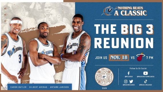 “La fête pour les 25 ans de la marque Wizards ne serait pas totale si on oubliait d’honorer ce Big Three”, estime Tommy Sheppard, le président de la franchise. “Les réunir ensemble un même soir, c’est encore plus spécial. Ces trois-là représentent une ère de la franchise et ils doivent être reconnus pour l’impact qu’ils ont eu. Cela a généré une nouvelle génération de fans des Wizards.”