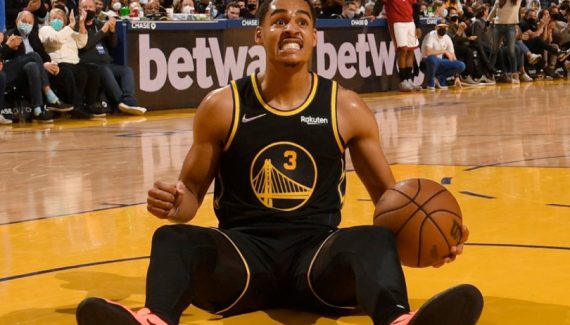 C’est aussi sans doute ce qu’ont fait les arbitres du match entre Golden State et Miami. Car il faut bien avouer que si beaucoup de dribbleurs dans la NBA actuelle (Ja Morant, Trae Young…) sont très souvent à la limite du “porter de balle”, Jordan Poole est peut-être celui qui le fait le moins discrètement.