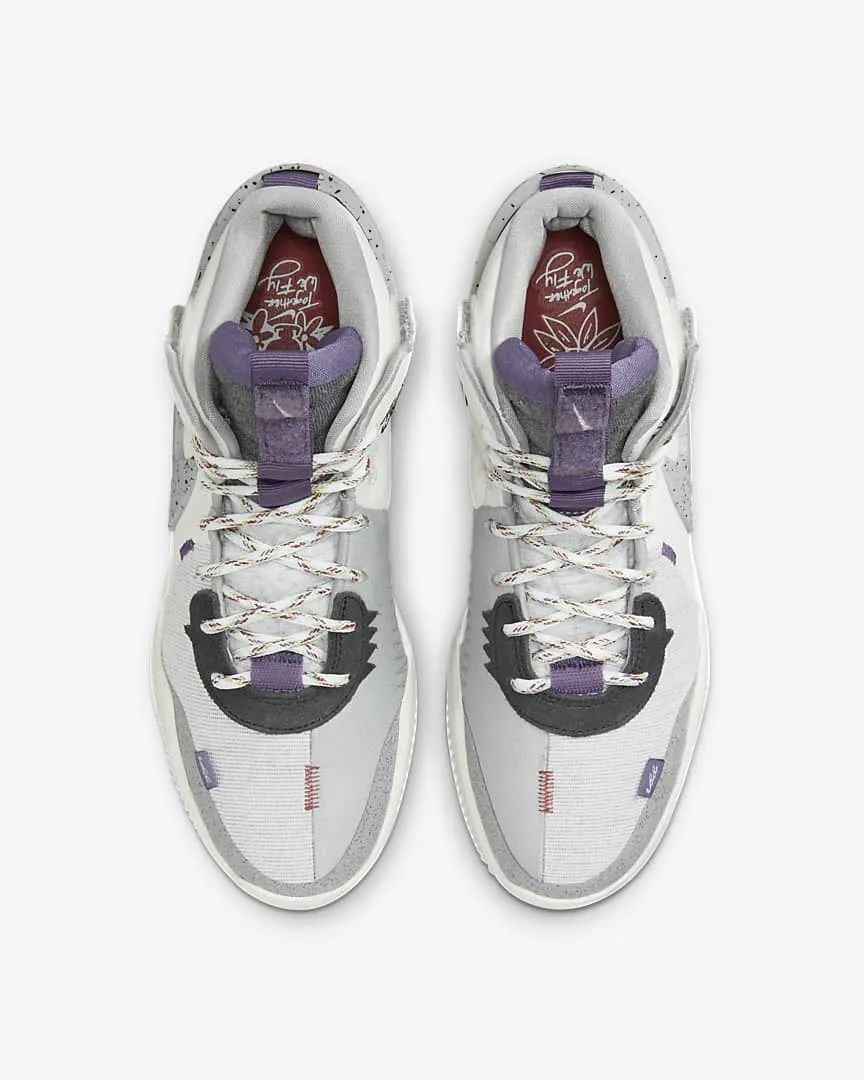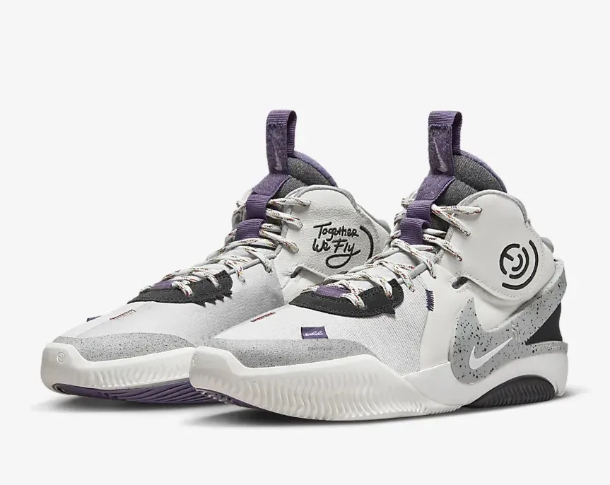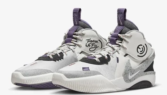 Nike a sorti le grand jeu pour la première chaussure signature de la star WNBA, Elena Delle Donne. La « Nike Air Deldon 1 » se veut être un modèle rassembleur, « inclusif », destiné à tout les genres et tous les profils. Le slogan « Together We Fly » de la campagne est par ailleurs présent sur l'empeigne habillée ici en blanc nacré et gris avec des touches de noir et une pointe de violet sur la languette.