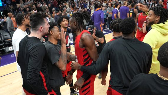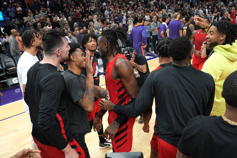Remise en jeu dans le camp des Suns. C’est Justise Winslow qui a la balle. A l’opposé, comme pour un backdoor, il trouve Jerami Grant. Le fadeaway est propre, le marcher aussi, et le ballon crève le filet au son du buzzer. Jerami Grant ne montre aucune émotion dans un premier temps. Puis tous ses coéquipiers lui sautent dessus. Portland s’impose 108-106 à Phoenix, et rejoint les Suns à la première place de la conférence Ouest.