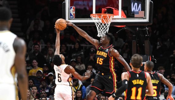 Dans la prolongation, ce sont les “big men” d’Atlanta qui fait la différence avec deux alley-oops de Clint Capela pour donner cinq points d’avance (119-114) puis ce 3-points de John Collins dans le corner pour passer l’écart à +6 (122-116). Mais Herb Jones relance le suspense avec une claquette, suivi d’un lancer (124-121). Derrière, il dévie un ballon, et offre une balle d’égalisation à ses coéquipiers. On attend Ingram ou McCollum pour le shoot, mais c’est Devonte’ Graham qui est trouvé dans le corner. Il est gêné par John Collins. Les arbitres semblent siffler faute pour donner trois lancers, avant de finalement siffler le pied sur la ligne de Graham !