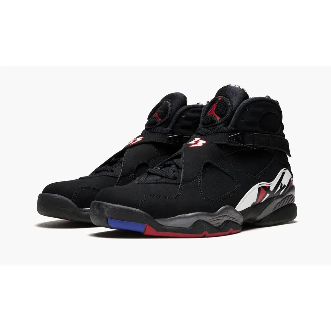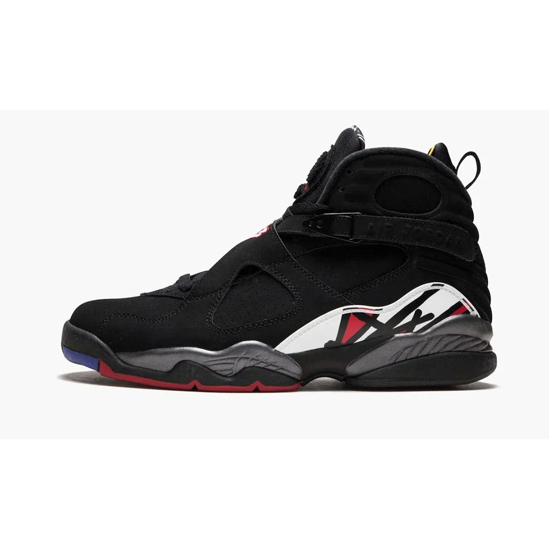 Ce modèle de la AJ8 avait connu son petit succès lors de sa dernière sortie en 2013. Il se distingue par une tige noire, son logo 23 en blanc aux contours rouges sur les lacets et le « Jumpman » rouge sur la languette. Un motif blanc noir et rouge apparaît également à la base de la tige. La semelle offre pour sa part des touches de noir, blanc, bleu, jaune et de rouge.