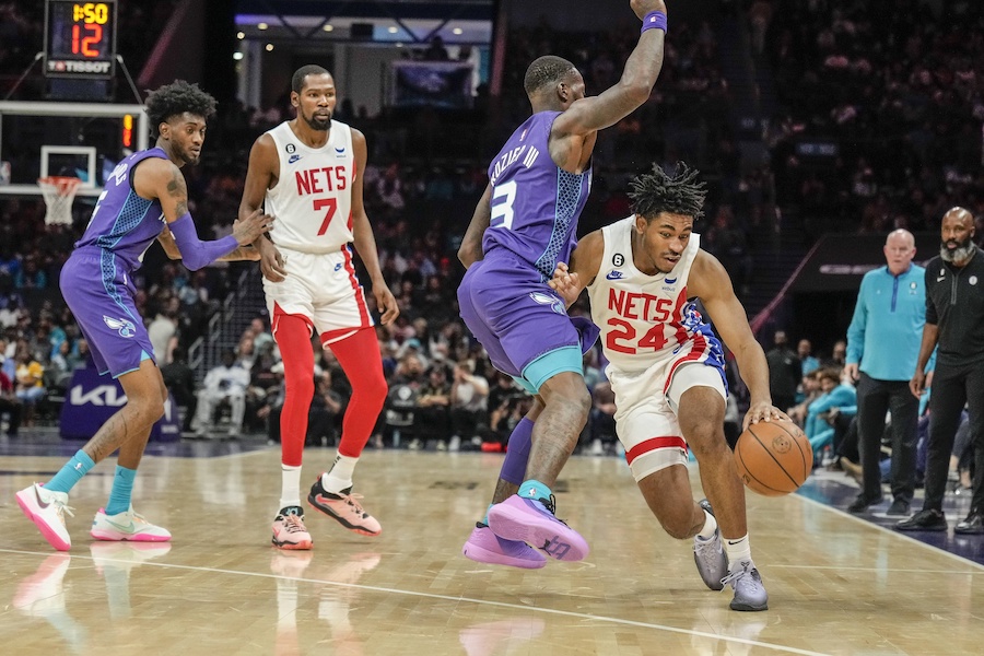 Ce dernier assure l’intérim depuis que Steve Nash a été remercié par Brooklyn. Le Canadien n’avait utilisé Cam Thomas qu’à deux reprises, pour un total d’environ 13 minutes jouées et un seul panier marqué. L’arrière semble avoir bénéficié de ce renvoi. Face aux Wizards, il a profité d’un « blowout » (+42) pour jouer 32 minutes et à peu près autant le suivant, dans une partie beaucoup plus serrée dont il a joué le « money time ».