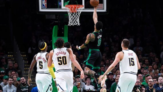Comme souvent, c’est le duo Jayson Tatum (34 points, 8 rebonds et 5 passes) – Jaylen Brown (25 points, 8 rebonds et 8 passes) qui a porté les Celtics, globalement très efficaces en attaque sous l’impulsion de son duo de “Jay’s”, notamment dans l’exercice du tir extérieur (16/37, 43.2%). En face, un Nikola Jokic fidèle à lui-même (29 points, 8 rebonds et 3 passes), comme d’habitude, même si un peu esseulé en attaque. Les Nuggets ont été plutôt sérieux en défense, mais tout simplement dépassés par les vagues incessantes de l’attaque des pensionnaires du TD Garden.