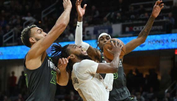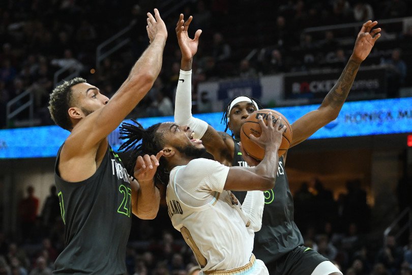 Privés de deux de leurs All-Stars, Donovan Mitchell à l’extérieur et Jarrett Allen à l’intérieur, les Cavs recevaient les Wolves cette nuit. Rapidement largués au score, les locaux ont couru après le score pendant tout le match, s’offrant une chance de revenir tout près dans la toute dernière minute grâce à un incroyable feu d’artifices de Darius Garland (51 points – record personnel – dont 27 en 4e quart)… mais en vain !