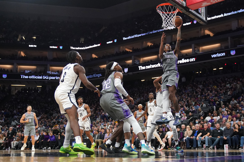 – Terence Davis fait sauter le verrou ! Un 16-7 qui devient un 24-11 après un gros tir à 3-points de Kevin Huerter en fin de possession… Les Kings sont partis tambour battant en premier quart mais les Nets ont réussi à revenir à hauteur, grâce à Durant et Simmons notamment. Mais c’était pour mieux craquer par la suite, avec un 16-0 en deuxième quart, impulsé par Terence Davis qui a fait la chanson à Royce O’Neale, que ce soit à 3-points ou en pénétration. Les Nets vont être repoussés à 20 points durant ce “run” qui tournera au cauchemar, à hauteur d’un 27-4… et ils ne reviendront plus !
