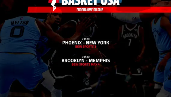 Doublé newyorkais sur BeIN Sports ce soir avec Suns – Knicks à 21h30 sur BeIN Sports 3, suivi de Nets – Grizzlies à 1h30 sur BeIN Sports Max 4. Une rencontre marquée par le retour de Kyrie Irving, mais aussi la titularisation de Ben Simmons sous les panneaux, en l'absence de Nic Claxton.