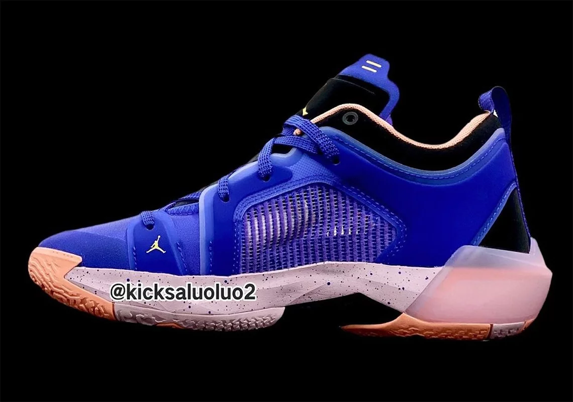 Jayson Tatum avait (encore) pris tout le monde à contre-pied en se présentant avec une première version Low de la Air Jordan 37 dès la mi-septembre. La sortie de la Air Jordan 37 Low pourrait donc être imminente puisque de nouveaux clichés ont fuité, avec cette fois un coloris principalement bleu foncé.