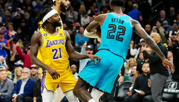 Nous sommes en fin de rencontre. Austin Reaves est au sol, après avoir été contré par Devin Booker, et Deandre Ayton se rapproche du joueur des Lakers pour le chambrer. Face à ça, Patrick Beverley monte en pression et décide de foncer dans le pivot des Suns, qui se trouve dos à lui.