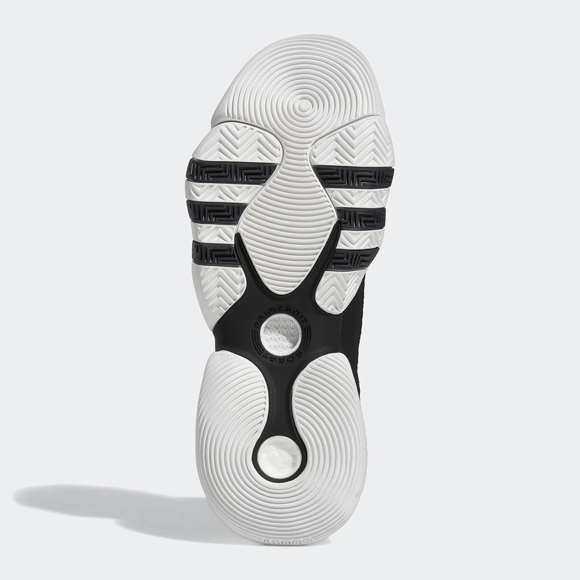 La semelle est également en noir et blanc. À noter la présence de finitions dorées comme sur les logos présents sur la languette et la tirette, et les inscriptions « Trae » et « Young » présents sur le talon.