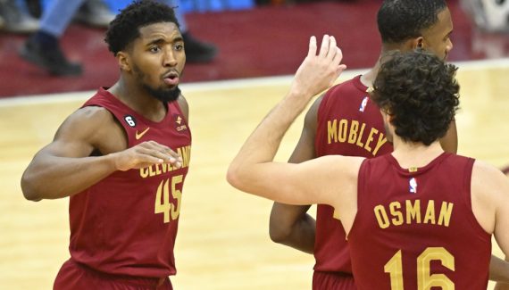 Alors qu’il allait prendre son 10e rebond, et signer son 6e double-double de la saison, Donovan Mitchell est venu le lui arracher des mains sur la dernière action du match. A côté d’eux, Jarrett Allen n’en croit pas ses yeux. Il avait LAISSÉ Evan Mobley prendre son 10e rebond mais Donovan Mitchell s’est jeté sur le ballon…