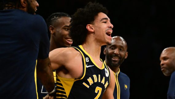— Bennedict Mathurin a rencontré LeBron James. Rappelez-vous l’été dernier : « Plein de gens disent que c’est un grand joueur. Je veux voir ça. Je ne pense pas que quelqu’un soit meilleur que moi. Il va devoir me le montrer », déclarait Bennedict Mathurin, tout juste drafté par les Pacers, au sujet de LeBron James. Cinq mois plus tard, le rookie a pu défier la légende et il s’est même offert le luxe de le dominer collectivement, rendant en prime une jolie copie face à lui : 23 points et 8 rebonds, à 10/22 aux tirs (contre 21 points et 7 rebonds, mais à 8/22). Avec surtout plusieurs paniers précieux pour maintenir Indiana en vie sur la fin…