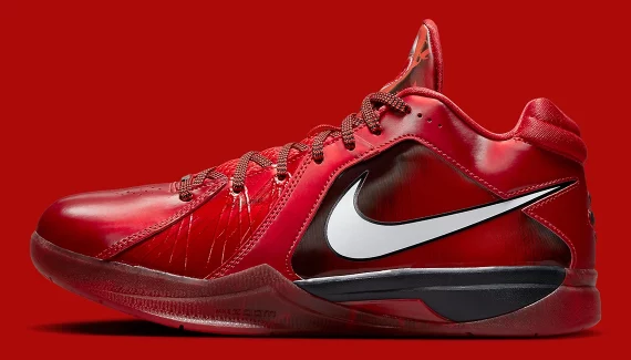 La marque à la virgule avait opté pour un coloris rouge, comme les couleurs portées par les joueurs sélectionnés dans la conférence Ouest, avec un léger dégradé allant jusqu’au noir sur l’empeigne, sur lequel ressort un gros « Swoosh » blanc.