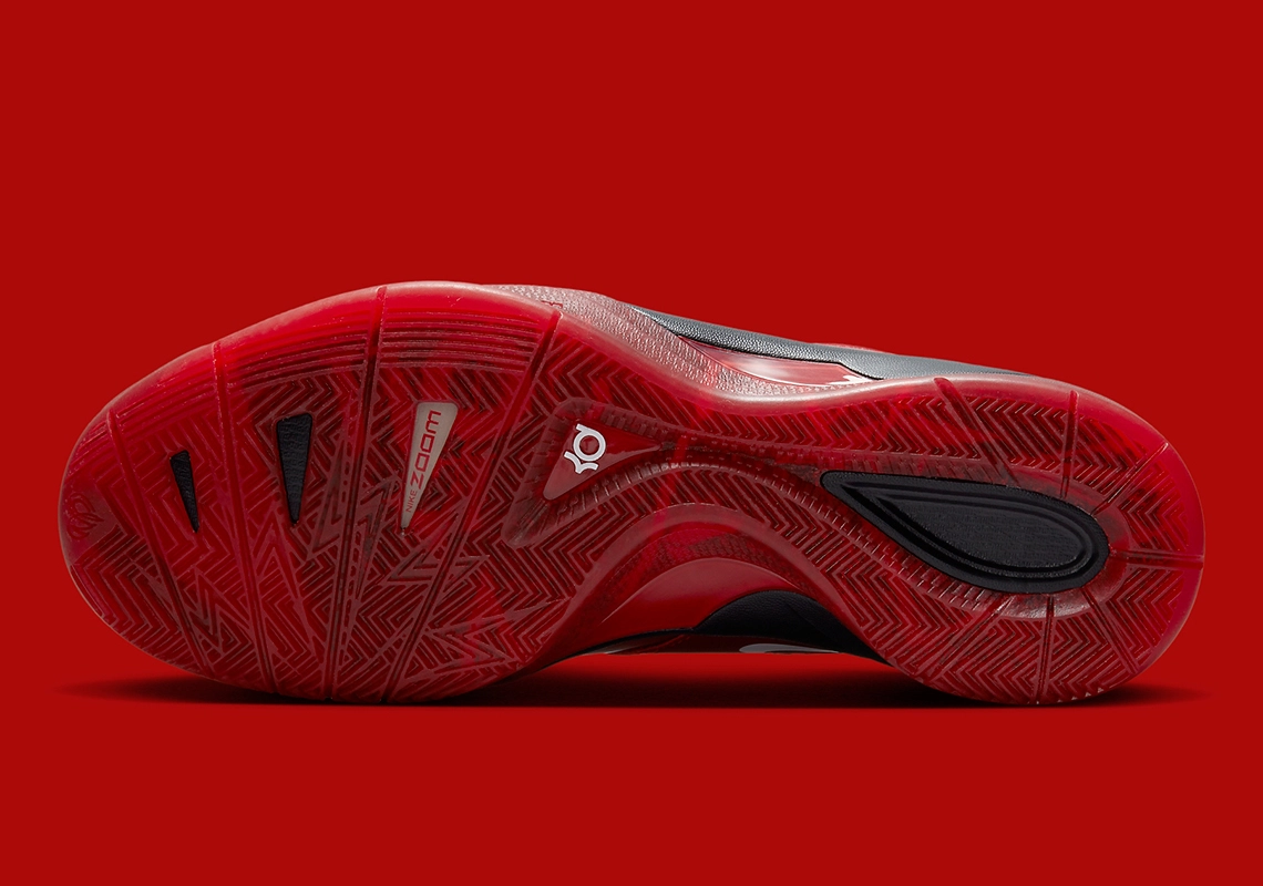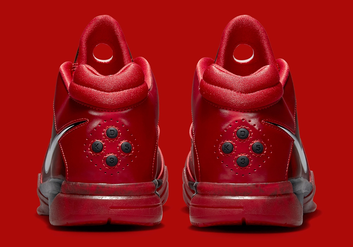 La languette est plutôt originale, avec un trou au milieu, tandis que le talon fait ressortir sur des mini-pastilles noires les lettres « K » et « D » ainsi que les chiffres 3 et 5, comme le numéro porté par KD.