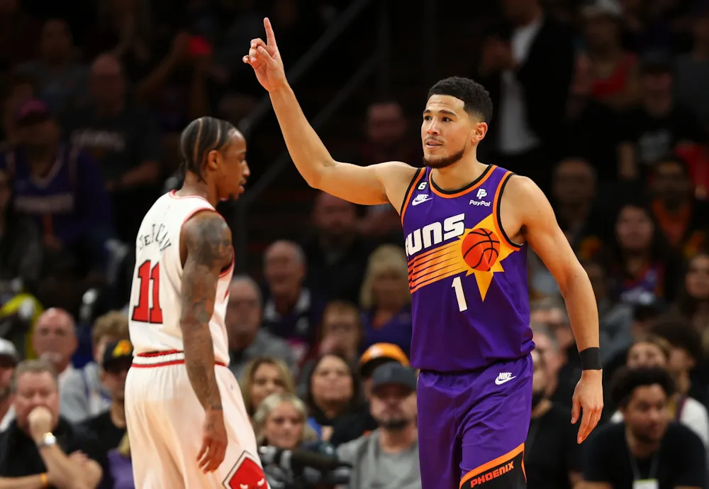 Zach LaVine et DeMar DeRozan n'ont jamais été considérés comme de grands défenseurs, et cette nuit, on en a eu encore la preuve… En revanche, Alex Caruso et Ayo Dosunmu sont des spécialistes, mais eux non plus n'ont rien pu faire face à un exceptionnel Devin Booker. L'arrière des Suns plante 51 points en 31 minutes à 20 sur 25 aux tirs !!!