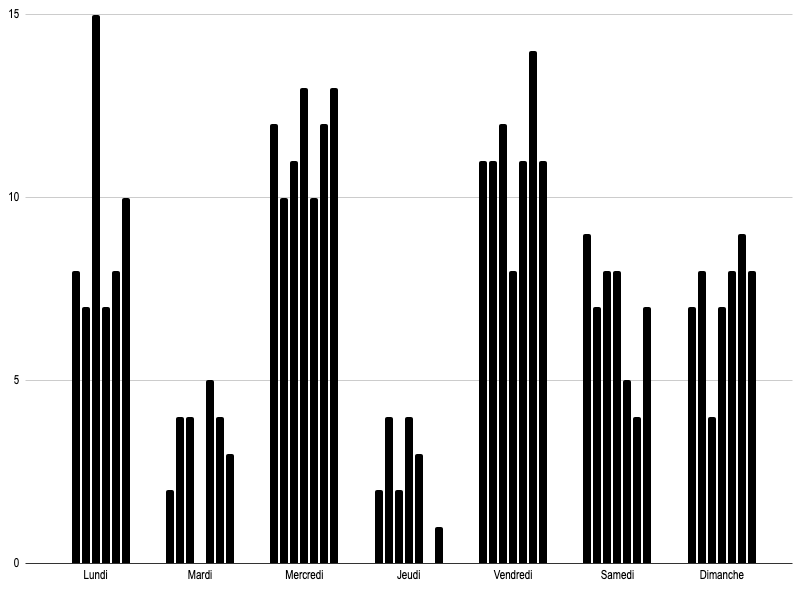 10, 3, 13, 1, 11, 7 et 8. Ce n’est pas le tirage de l’EuroMillions mais le nombre de matchs disputés chaque soir, cette semaine. Avec donc des lundi, mercredi et vendredi très chargés, alors que les mardi et jeudi sont très légers.
