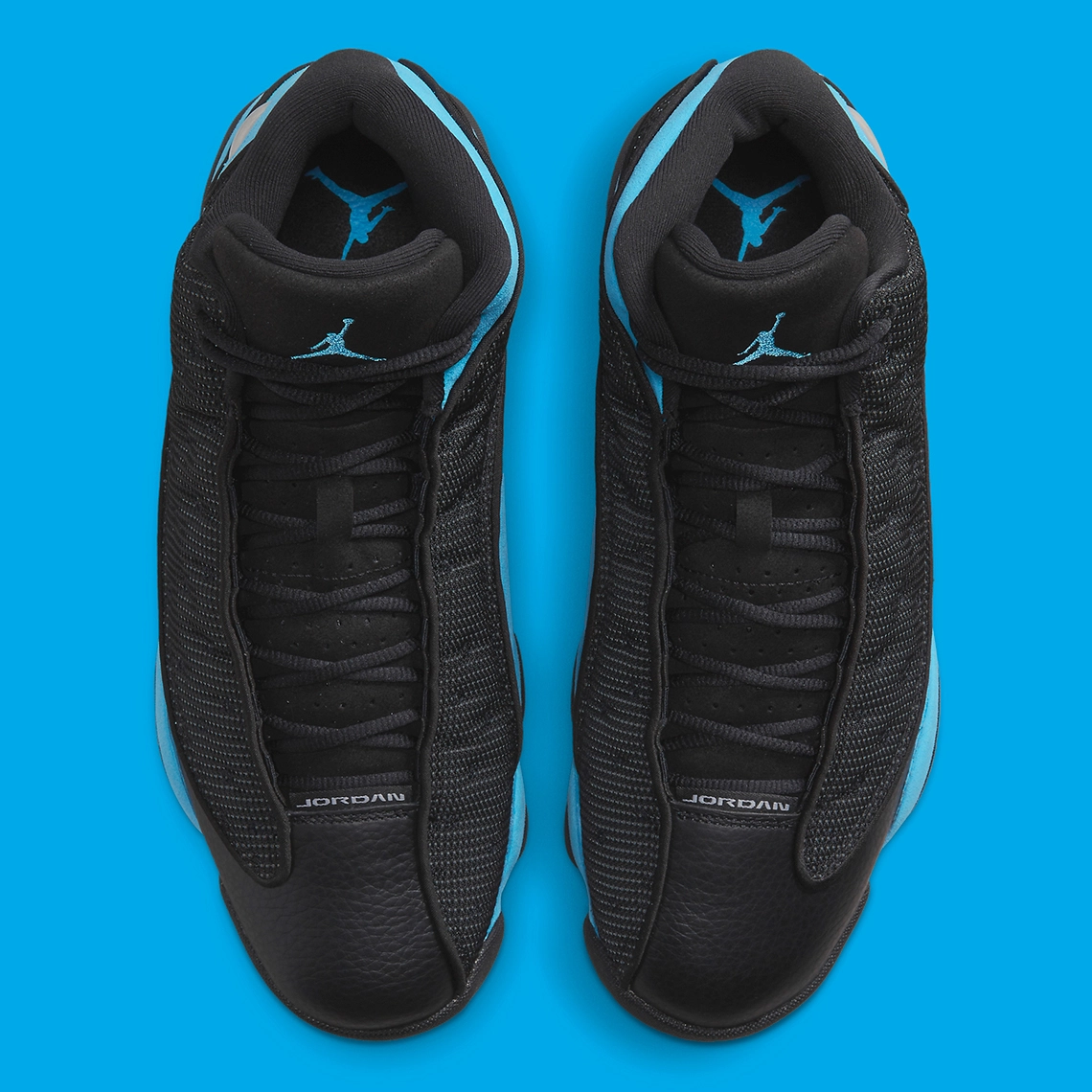 Le « Jumpman » sur la languette et le talon ressortent également en bleu clair, l’ensemble reposant sur une semelle extérieure également noire et blanche.