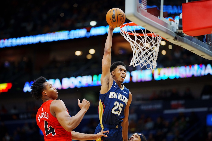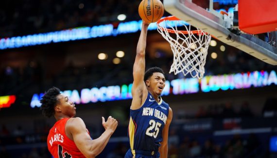 Il a décollé sans élan avec un pied en dehors de la raquette pour claquer un dunk à deux mains. Depuis le début de la saison, Trey Murphy III a dunké à 20 reprises, en 20 matchs.