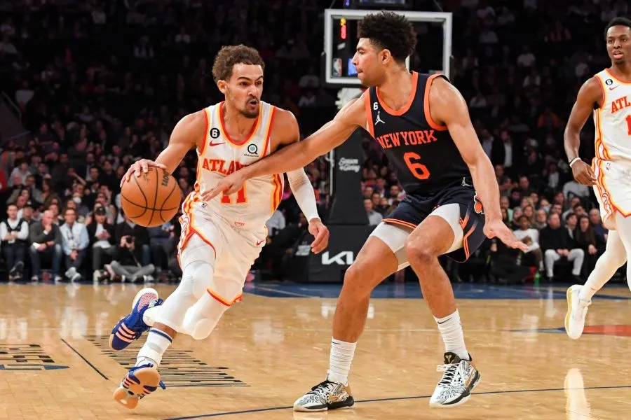 Quentin Grimes, après des galères marquées par des pépins physiques en début de saison, a effectivement signé son match référence dans la victoire des Knicks au Madison Square Garden contre Trae Young et ses compères, avec 23 points (8/11 dont 5/7 derrière l'arc), 4 rebonds, 2 passes et 2 contres, et une défense exemplaire face à “Ice Trae” et les autres arrières des Hawks.