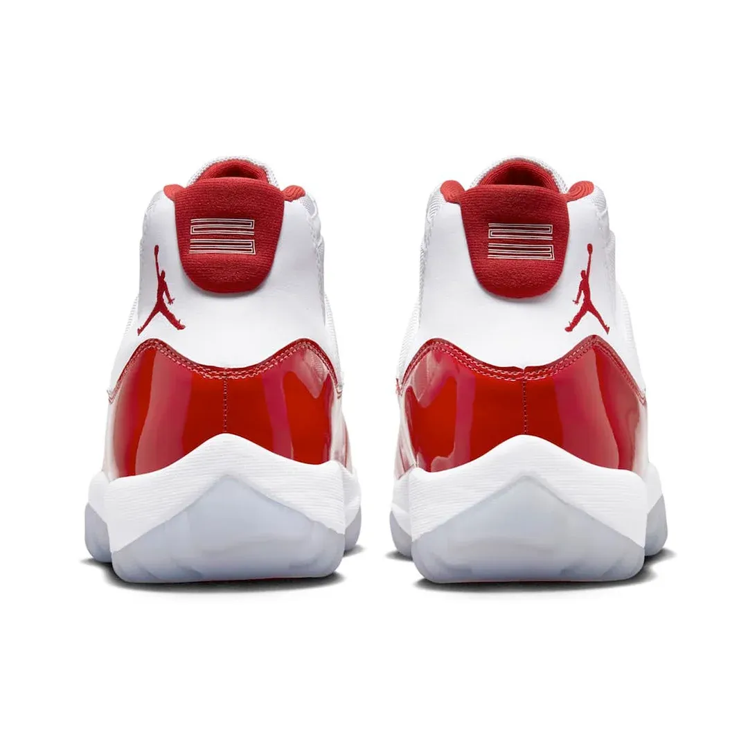 Cette année, Jordan Brand a opté pour le rouge cerise afin de boucler 2022 en beauté. La tige blanche est donc recouverte d'une base en cuir verni rouge « Cherry ». L'intérieur du col et les logos « Jumpman » apparaissent aussi en rouge.