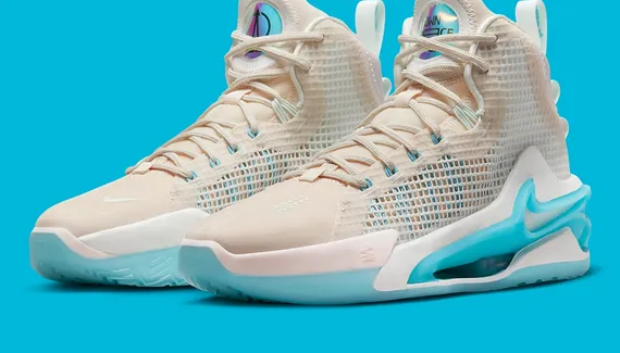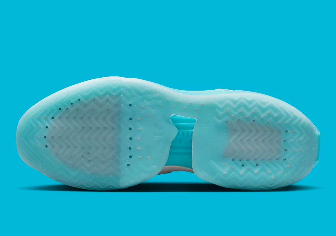 Alors qu'on pouvait espérer la sortie d'une Nike Air Zoom GT Jump 2, pour suivre la « GT Cut 2 », Nike a choisi de relancer le modèle initial avec de nouveaux coloris dont ce « Vivid Sky », reprenant une tige aux tons blanc-blanc nacré agrémentée de quelques touches de bleu clair au niveau des accroches des lacets. On retrouve ce même bleu pour orner une partie de la semelle intermédiaire et la semelle extérieure.