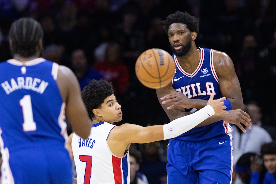 Cette action, dans le deuxième quart-temps du match entre Philadelphie et Detroit, illustre les progrès du pivot face aux prises à deux. « Il prend son temps sur le parquet et il comprend qu’il peut démolir les défenses de beaucoup d’autres équipes. Il a été excellent pour repérer les prises à deux, en les repoussant, ce qui nous a permis d’obtenir des tirs à 3-points, de bons tirs », juge Tobias Harris, après cette rencontre largement remportée par son équipe.