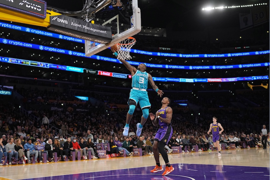 Après une première période hyper offensive et parfaitement équilibrée (67-67), les Hornets ont commencé à s’échapper au score à la faveur d’un 16-2 infligé (69-83) juste après le passage aux vestiaires, en seulement quatre minutes. Discret jusque-là, Terry Rozier a fait beaucoup de mal aux Lakers dans un jeu de transition rondement orchestré par LaMelo Ball.