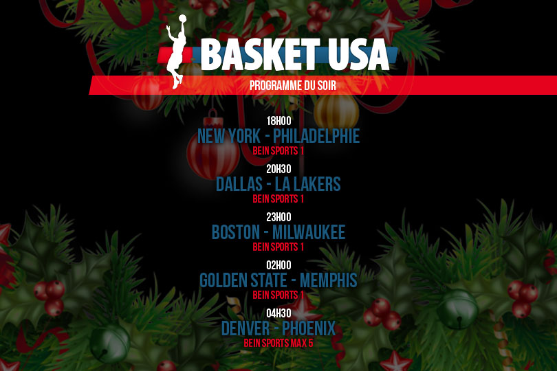 Affaiblis, les Warriors accueillent eux les Grizzlies à partir de 02h00 (beIN Sports 1) alors que la soirée se termine à Denver, qui reçoit Phoenix à partir de 04h30 (beIN Sports Max 5).