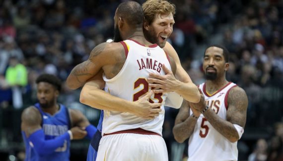 C’est clairement l’une des plus belles statues dédiées à un joueur, et LeBron James était à Dallas dimanche soir pour l’hommage des Mavericks rendu à Dirk Nowitzki. L’ancien MVP est une légende de la ville, et il a désormais sa journée, sa rue et désormais sa statue ! L’oeuvre “est un fadeaway sur une jambe, et ça ne pouvait qu’être que ça !” a réagi LeBron James, adversaire de Dirk Nowitzki lors des Finals 2011.